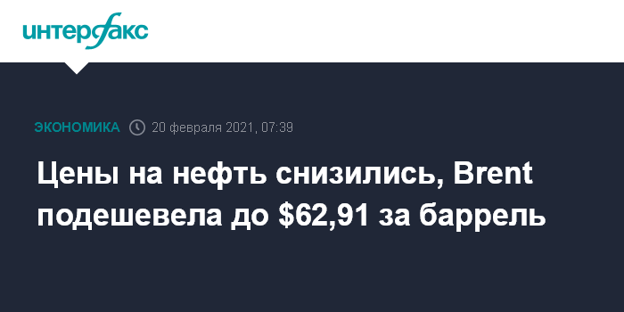 Цены на нефть снизились, Brent подешевела до $62,91 за баррель