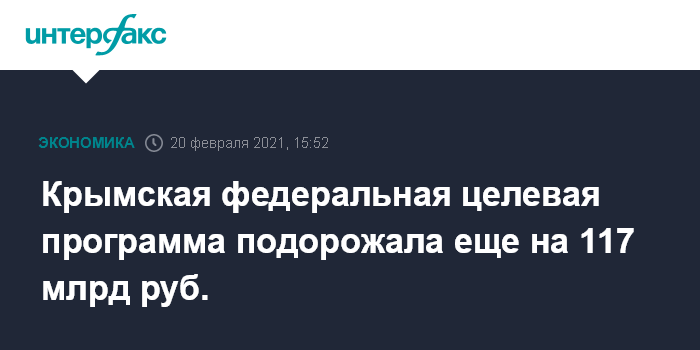 Крымская федеральная целевая программа подорожала еще на 117 млрд руб.