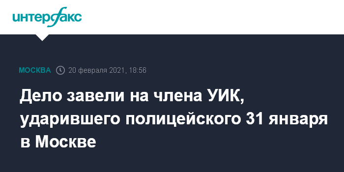 Дело завели на члена УИК, ударившего полицейского 31 января в Москве