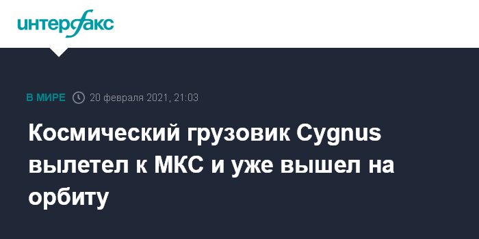 Москва. 20 февраля. INTERFAX.RU - NASA запустило к Международной космической станции космический грузовой корабль Cygnus, ракета-носитель Antares американской компании Northrop Grumman уже вывела его на орбиту.