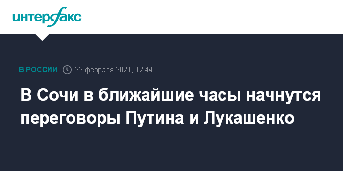 Москва. 22 февраля. INTERFAX.RU - Переговоры президентов России и Белоруссии Владимира Путина и Александра Лукашенко начнутся в ближайшие часы в Сочи.