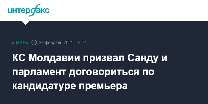 Москва. 23 февраля. INTERFAX.RU - Конституционный суд (КС) Молдавии призвал президента и парламент к сотрудничеству на фоне нерешенной проблемы выдвижения кандидата на пост премьер-министра.