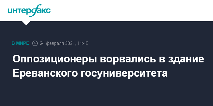 Москва. 24 февраля. INTERFAX.RU - Несколько десятков демонстрантов ворвались в здание Ереванского государственного университета (ЕГУ).
