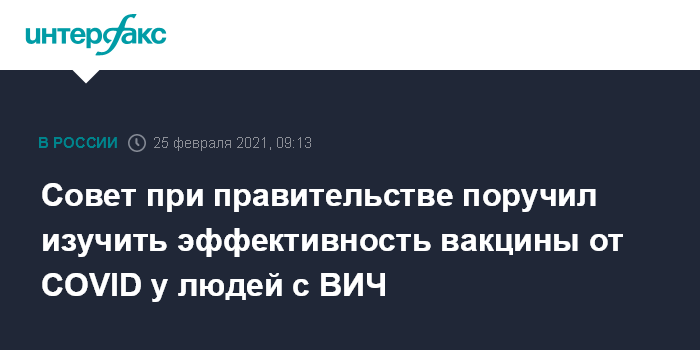 Совет при правительстве поручил изучить эффективность вакцины от COVID у людей с ВИЧ