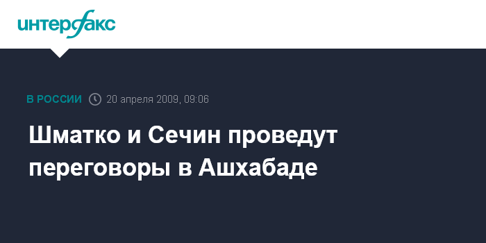 Шматко и Сечин проведут переговоры в Ашхабаде