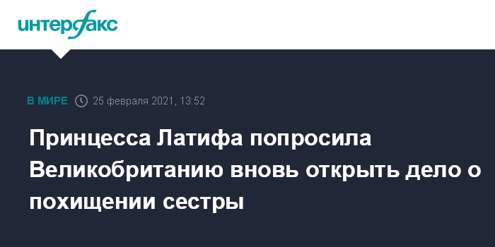 Москва. 25 февраля. INTERFAX.RU - Дубайская принцесса Латифа обратилась в британскую полицию с просьбой повторно расследовать похищение ее старшей сестры в Кембридже более 20 лет назад, сообщается на сайте BBC News.