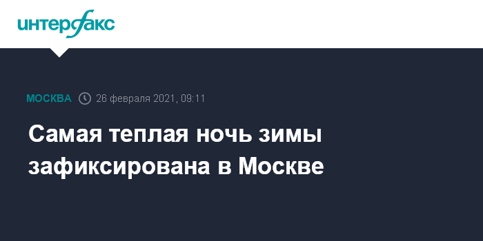 "Эта ночь оказалась самой теплой за эту зиму. Прежний максимум текущего сезона наблюдался 25 января, на ВДНХ ночью было плюс 3,8 градуса", - говорится в сообщении.