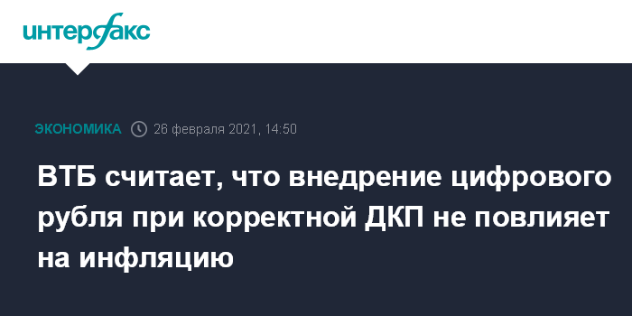 ВТБ считает, что внедрение цифрового рубля при корректной ДКП не повлияет на инфляцию