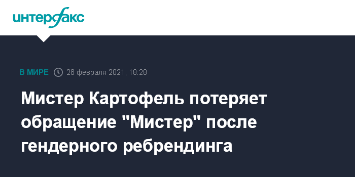 Мистер Картофель потеряет обращение "Мистер" после гендерного ребрендинга