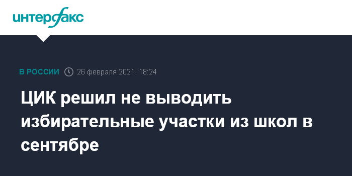 Москва. 26 февраля. INTERFAX.RU - К единому дню голосования в сентябре 2021 года Центризбирком не планирует переносить избирательные участки из зданий школ, это невозможно, сообщила председатель комиссии Элла Памфилова.