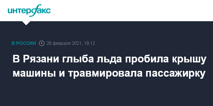 Москва. 26 февраля. INTERFAX.RU - Глыба льда упала в Рязани с надземного пешеходного перехода напротив Центрального автовокзала на проезжающий автомобиль, сообщила в пятницу пресс-служба СУ СКР по региону.