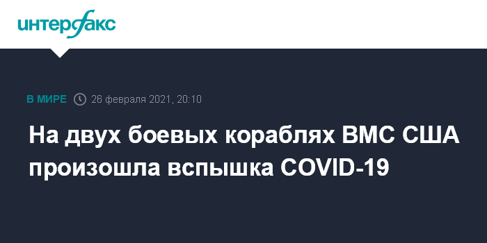 Москва. 26 февраля. INTERFAX.RU - Среди членов экипажей десантно-вертолётного корабля-дока USS San Diego (LPD-22) и ракетного крейсера Sea USS Philippine Sea (CG-58) ВМС США, находящихся на Ближнем Востоке, произошла вспышка коронавируса, сообщил 5-й оперативный флот.