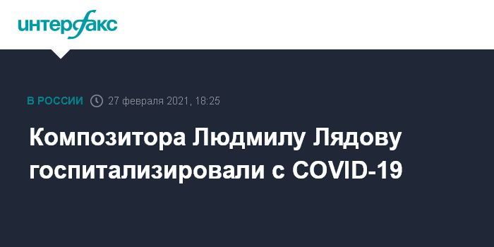 Москва. 27 февраля. INTERFAX.RU - Народная артистка РСФСР, композитор и певица Людмила Лядова госпитализирована с коронавирусом, сообщил "Интерфаксу" ее представитель Виталий Мирошников в субботу.