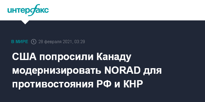 США попросили Канаду модернизировать NORAD для противостояния РФ и КНР