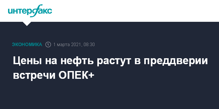 Москва. 1 марта. INTERFAX.RU - Цены на нефть растут в понедельник, рынок на этой неделе ждет новых решений стран ОПЕК+ относительно уровней добычи с апреля 2021 года.