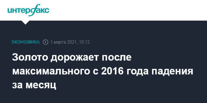 Москва. 1 марта. INTERFAX.RU - Золото дорожает, восстанавливаясь после самого существенного с конца 2016 года падения за месяц на фоне ослабления доллара.