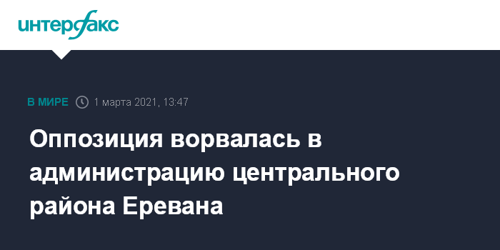Москва. 1 марта. INTERFAX.RU - Оппозиционно настроенные демонстранты ворвались в здание районной администрации центра города Еревана.