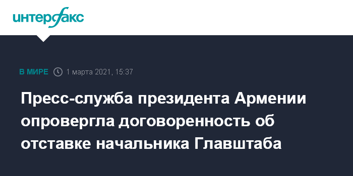 25 февраля Вооруженные силы Армении потребовали отставки премьера Никола Пашиняна и правительства республики. Пашинян в ответ заявил о попытке военного переворота и подал президенту ходатайство об увольнении начальника Главного штаба ВС Армении Гаспаряна.