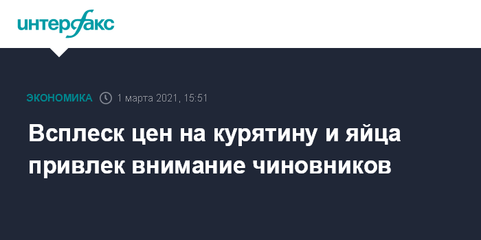 Москва. 1 марта. INTERFAX.RU - Всплеск потребительских цен на мясо кур, который Росстат фиксирует в последние несколько недель, привлек внимание чиновников.