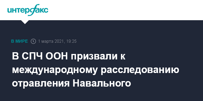 В СПЧ ООН призвали к международному расследованию отравления Навального