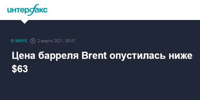 Цена барреля Brent опустилась ниже $63