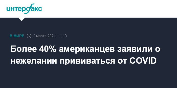 Более 40% американцев заявили о нежелании прививаться от COVID