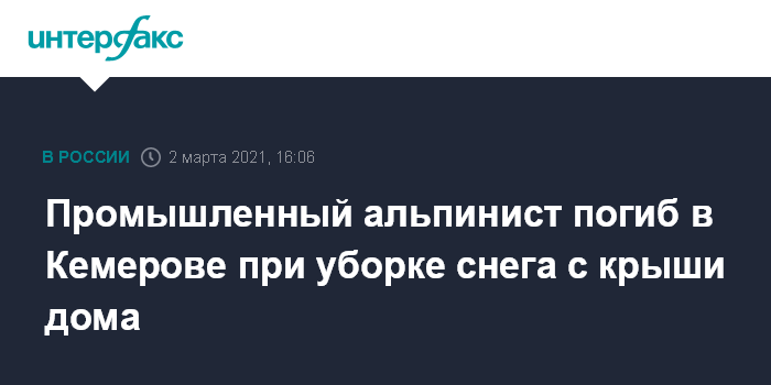 Промышленный альпинист погиб в Кемерове при уборке снега с крыши дома