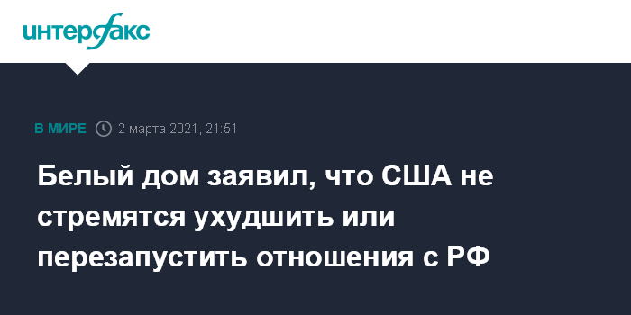 Белый дом заявил, что США не стремятся ухудшить или перезапустить отношения с РФ