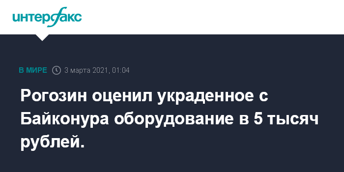 Рогозин оценил украденное с Байконура оборудование в 5 тысяч рублей.