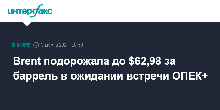 Brent подорожала до $62,98 за баррель в ожидании встречи ОПЕК+