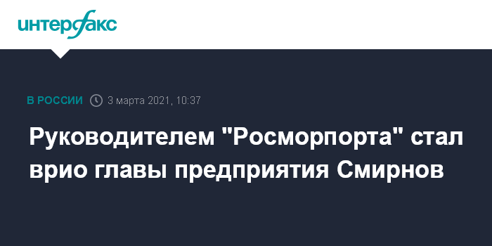 Смирнов в январе текущего года был назначен временно исполняющим обязанности генерального директора ФГУП "Росморпорт", ранее был заместителем гендиректора предприятия по работе с органами исполнительной власти.