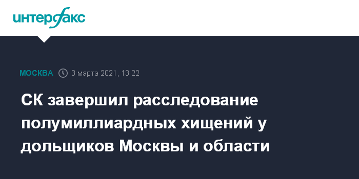 СК завершил расследование полумиллиардных хищений у дольщиков Москвы и области
