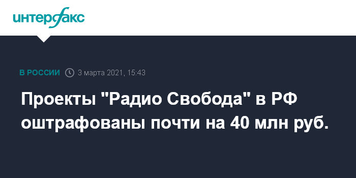 Проекты "Радио Свобода" в РФ оштрафованы почти на 40 млн руб.