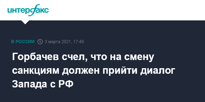 Москва. 3 марта. INTERFAX.RU - Экс-президент СССР Михаил Горбачев заявил, что новые антироссийские санкции не пойдут на пользу отношениям Запада и РФ, по его мнению, на смену рестрикциям должен прийти диалог.