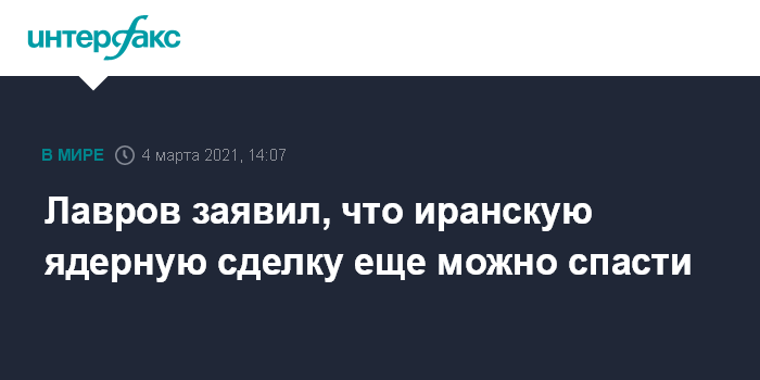 ""Окно возможностей" для спасения ядерной сделки еще не закрыто. Необходимое условие - полное и последовательное выполнение всеобъемлющих договоренностей 2015 года всеми странами, которые их разрабатывали и заключали. Мы тесно взаимодействуем со всеми участниками СВПД (Совместного всеобъемлющего плана действий - ИФ) для достижения этой цели", - сказал Лавров в интервью британскому журналу "Русская мысль".