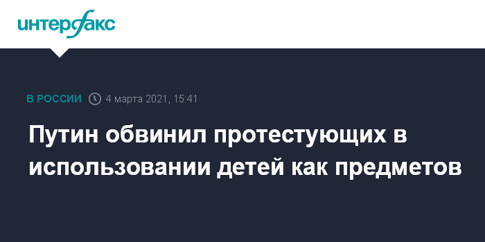 "С вытаскиванием на ту же улицу для того, чтобы похулиганить, подраться с полицией, а потом за детей спрятаться, подставляя их вперед, на самом деле. Что это такое? Это использование детей в качестве предмета, это использование детей в качестве инструмента для достижения чьих-то эгоистических целей, и всегда это использование детей как источника получения прибыли", - объяснил Путин.