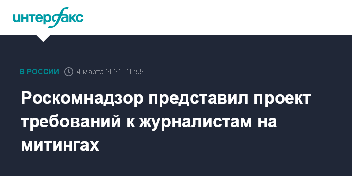Москва. 4 марта. INTERFAX.RU - Роскомнадзор вынес на общественное обсуждение проект приказа об отличительных знаках журналиста, работающего на массовых публичных мероприятиях. Соответствующий документ размещен на портале проектов нормативных правовых актов в четверг для общественного обсуждения, которое продлиться до 18 марта.