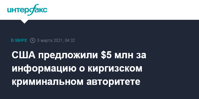 США предложили $5 млн за информацию о киргизском криминальном авторитете