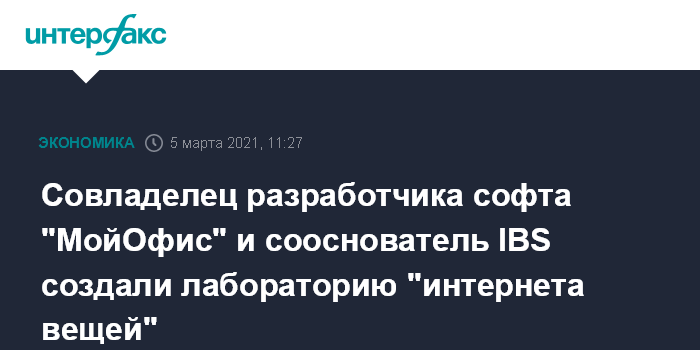 Совладелец разработчика софта "МойОфис" и сооснователь IBS создали лабораторию "интернета вещей"