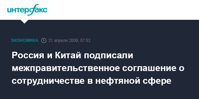 Россия и Китай подписали межправительственное соглашение о сотрудничестве в нефтяной сфере