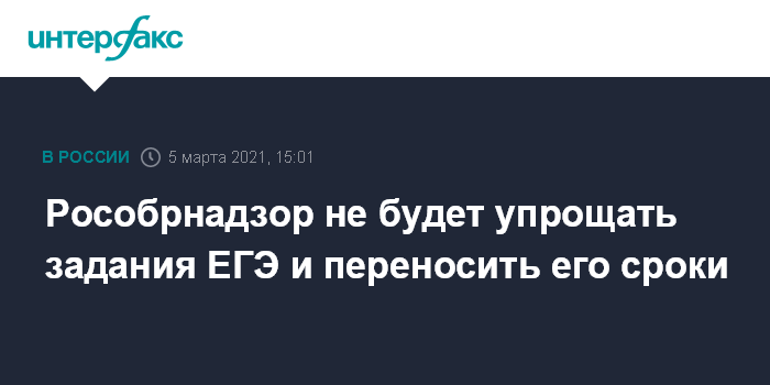 "Все эти нововведения, о которых мы говорим сегодня и последние три месяца, они касаются только итоговой аттестации в 2021 году. Мы искренне надеемся, что в следующем году (...) ЕГЭ пройдет в штатном режиме, как и проводилось всегда", - сказал представитель Рособрнадзора.