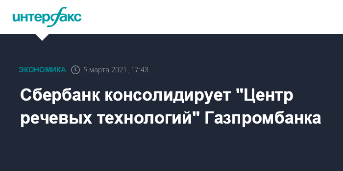 Сбербанк консолидирует "Центр речевых технологий" Газпромбанка