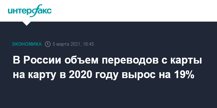 В России объем переводов с карты на карту в 2020 году вырос на 19%