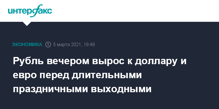 Рубль вечером вырос к доллару и евро перед длительными праздничными выходными