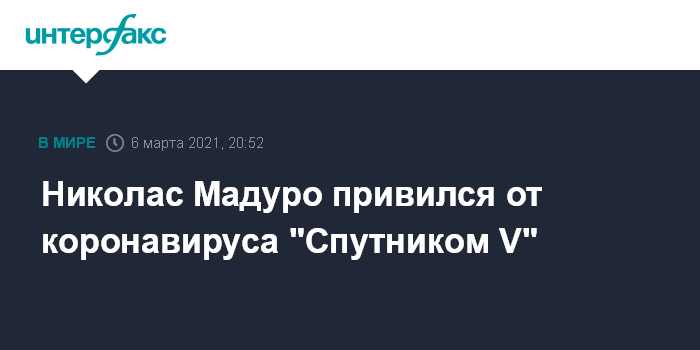 "Спутник V" был зарегистрирован в Венесуэле в середине января. Вакцинация препаратом в стране началась 19 февраля. Тогда президент Венесуэлы назвал "Спутник V" самой продвинутой и безопасной вакциной от коронавируса.