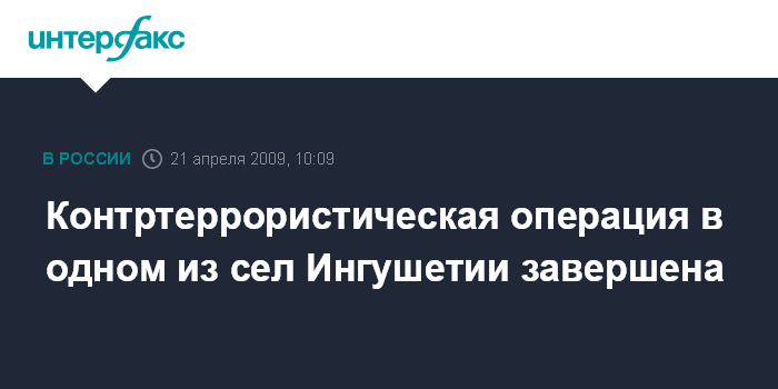 Москва. 21 апреля. INTERFAX.RU - Контртеррористическая операция (КТО), которая была объявлена накануне в селении Алкун Сунженского района Ингушетии, завершена.