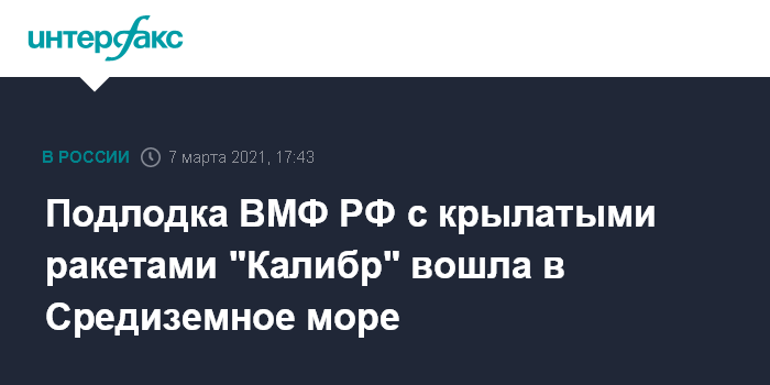 Подлодка ВМФ РФ с крылатыми ракетами "Калибр" вошла в Средиземное море