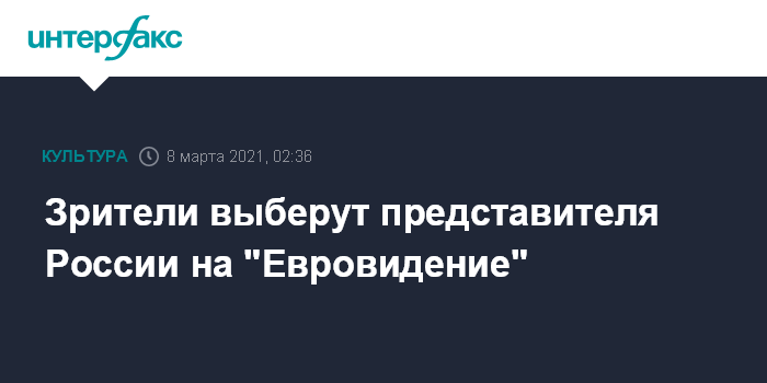 Москва. 8 марта. INTERFAX.RU - Представителя России на международном конкурсе "Евровидение 2021" выберут зрительским голосованием на спецшоу на Первом канале 8 марта.
