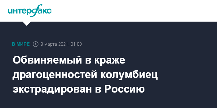 Обвиняемый в краже драгоценностей колумбиец экстрадирован в Россию