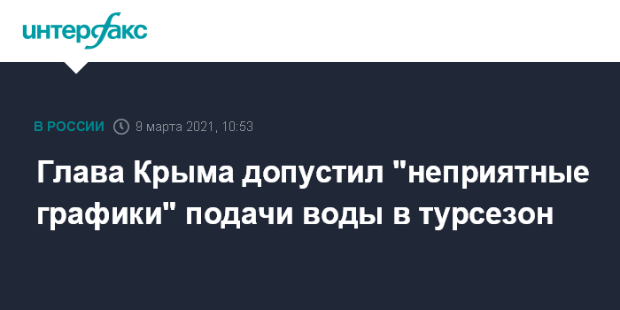 Москва. 9 марта. INTERFAX.RU - Власти Крыма, где третий год наблюдается маловодье, не рассчитывают на сильные осадки нынешним летом, просят курортные регионы подготовить к началу следующей недели доклады по работе в предстоящий туристический сезон, исходя из худшей ситуации с водой.